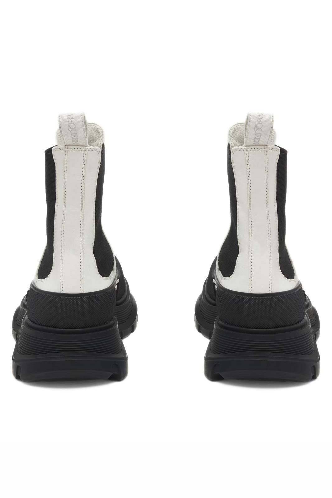 Alexander McQueen Slick Chelsea Leather Boots in White with Black Panels – Women