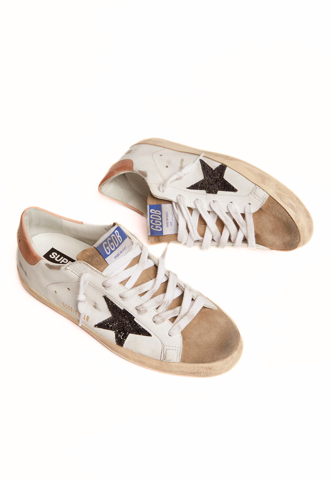 Golden Goose Women's Super-Star with black glitter star and pink heel tab