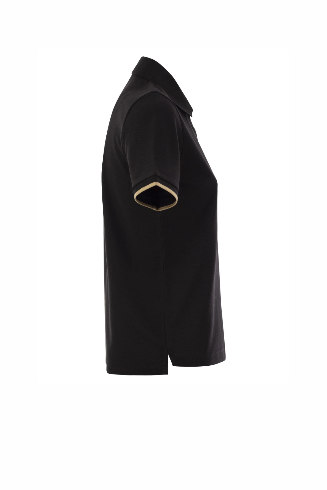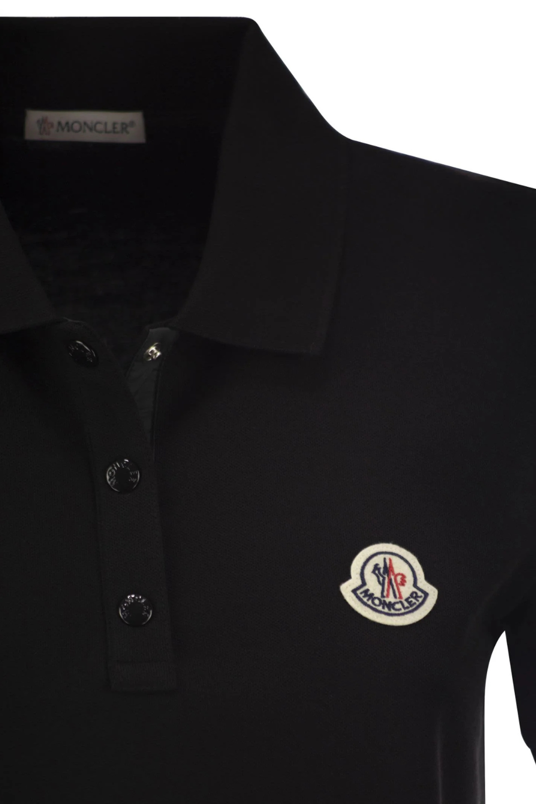 Moncler Cotton Piqué Black Polo Shirt With Logo Patch – Woman