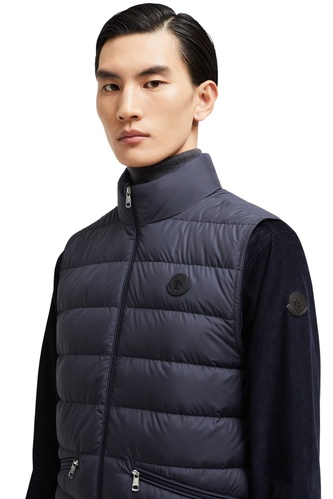 Cu o siluetă clasică și detalii rafinate, vesta este perfectă atât pentru ținute casual, cât și pentru layering elegant în medii urbane. Închiderea frontală cu fermoar și buzunarele laterale cu fermoar adaugă funcționalitate, în timp ce emblema Moncler din piele aplicată pe piept aduce o notă luxoasă și discretă. Nuanța navy blue contribuie la versatilitatea piesei, ușor de integrat în garderoba de zi cu zi.