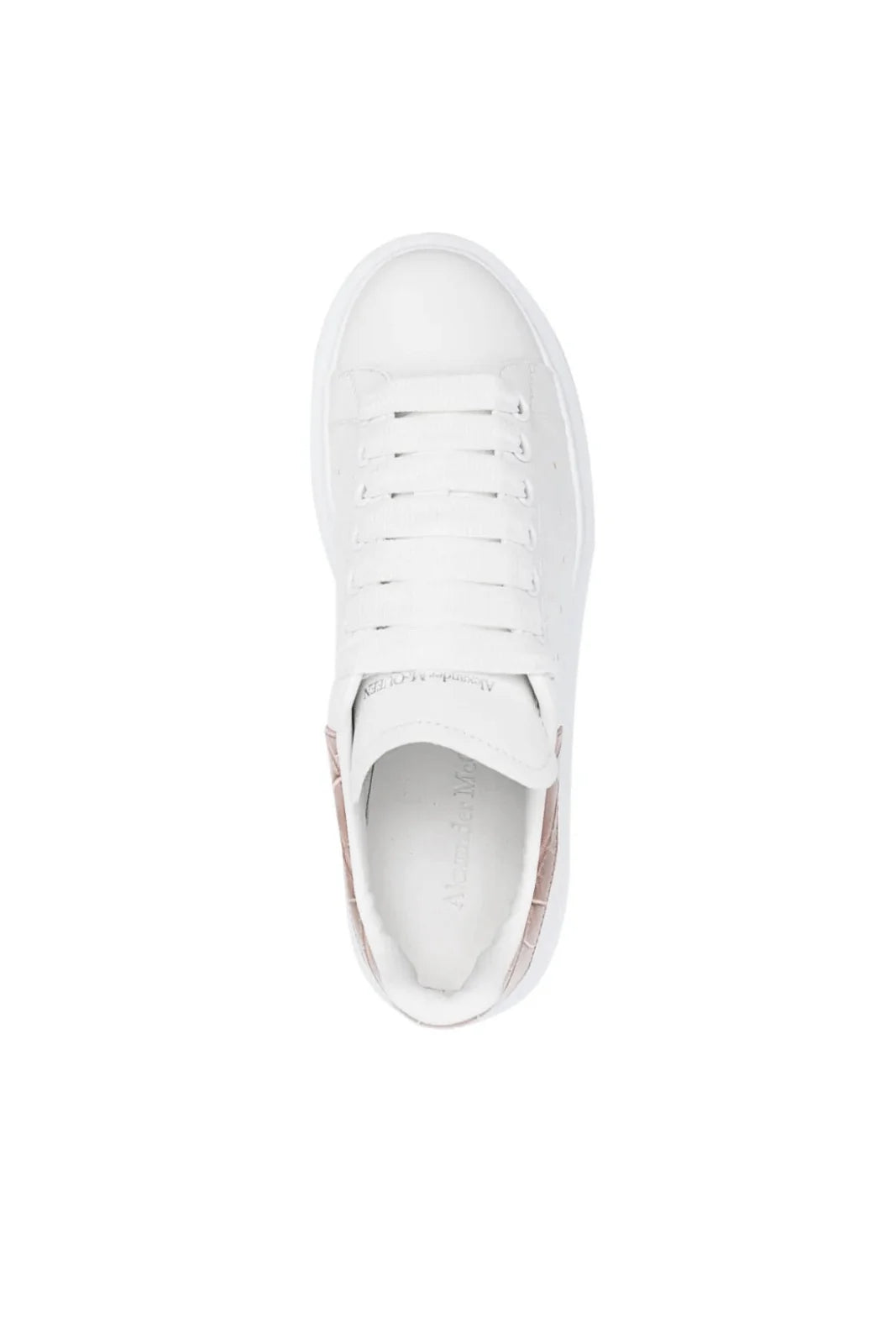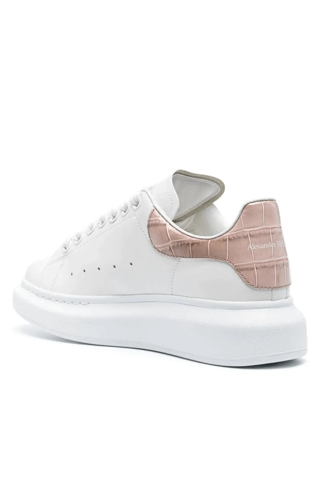 Alexander McQueen Oversized Sneakers – White with Pink Crocodile-Embossed Detail (Women's)
