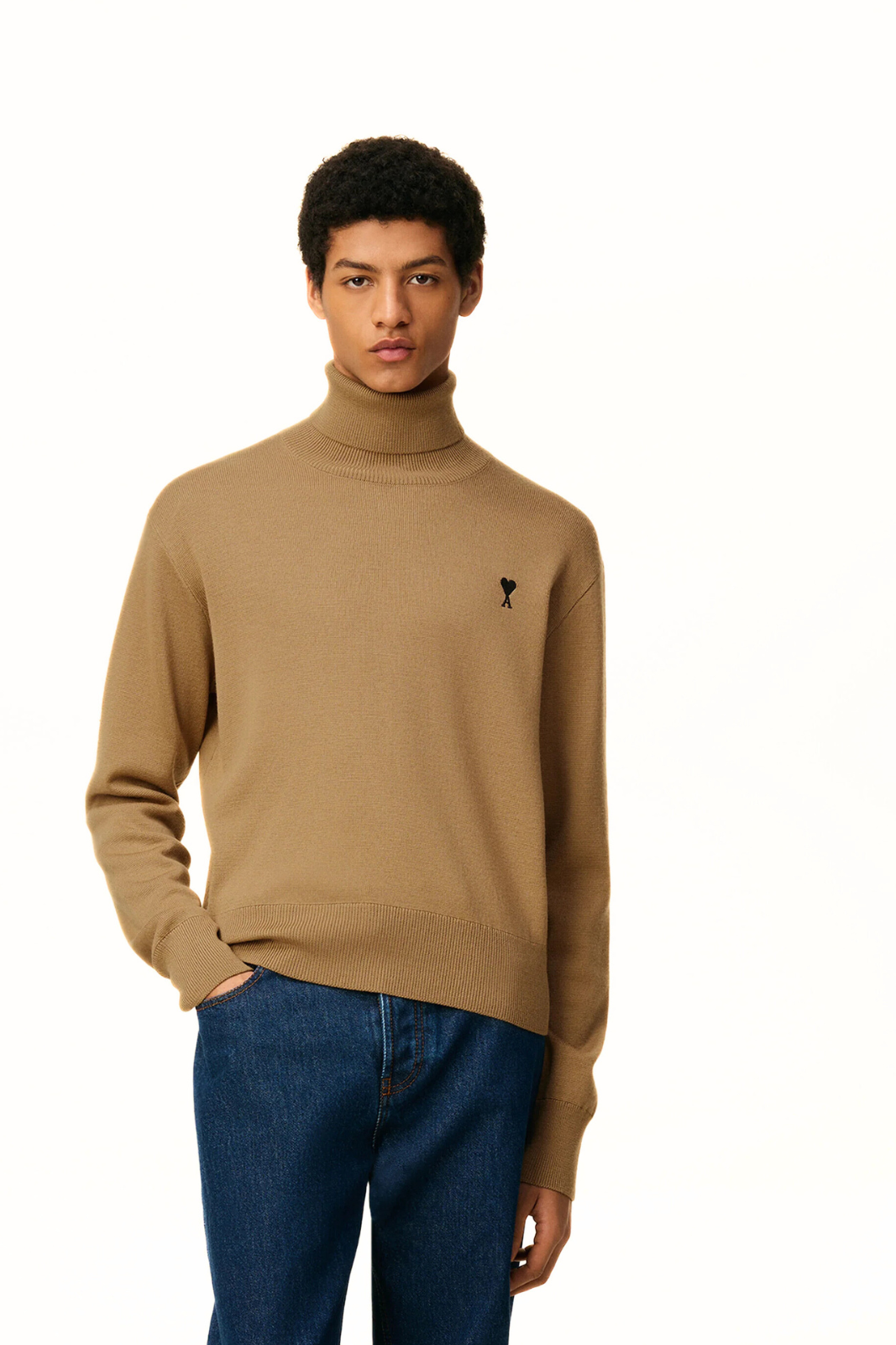 Ami Paris Ami De Coeur Wool Turtleneck Sweater in Brown – Men