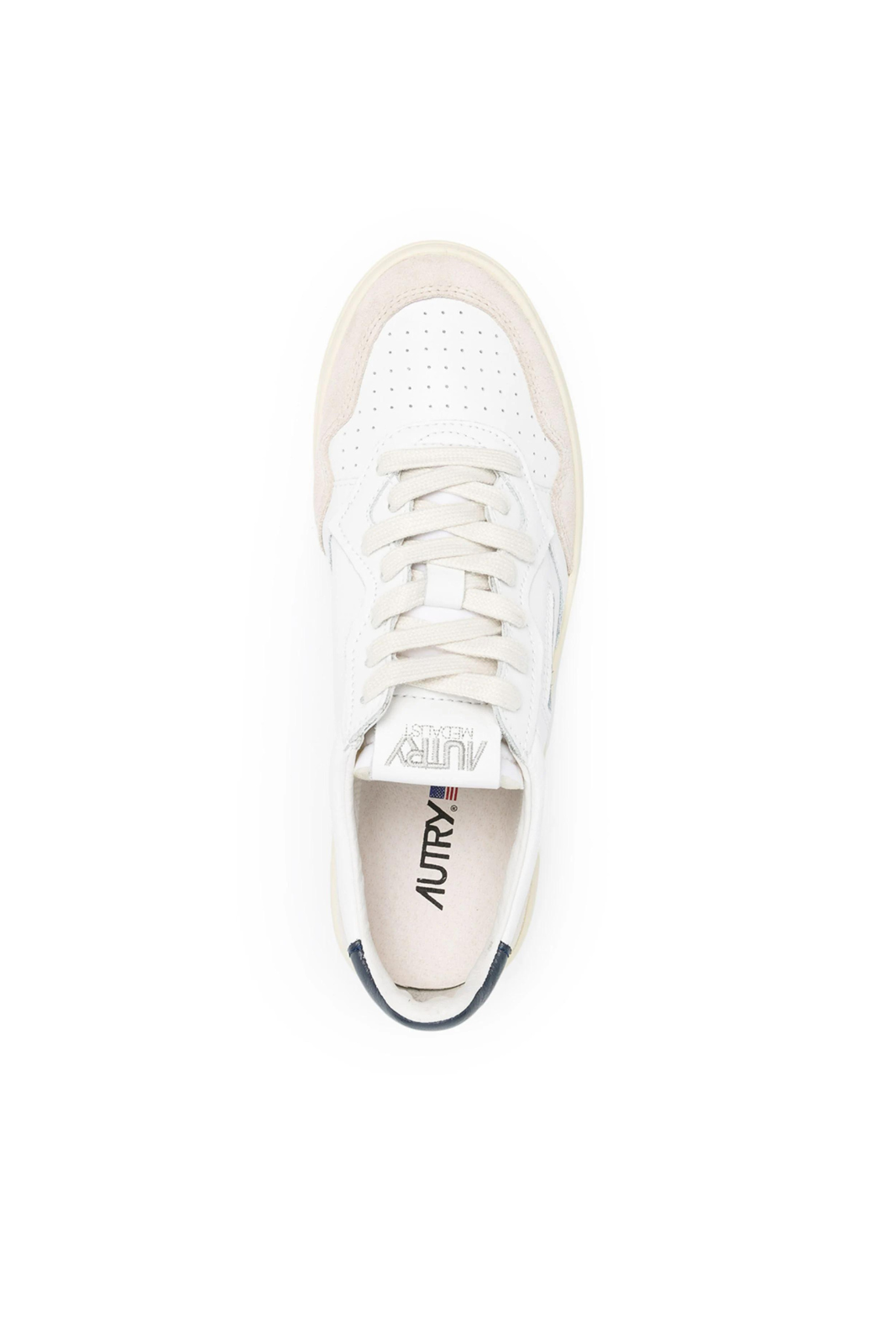 AUTRY Medalist Suede-Panel Sneakers White Nude Black sunt o combinație stilată de piele și piele întoarsă, aducând un plus de eleganță și confort datorită detaliilor atent lucrate și designului clasic sportiv.