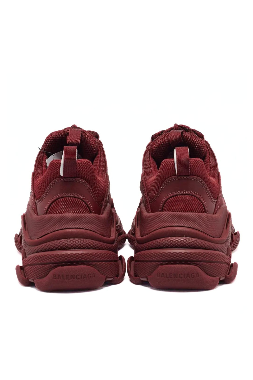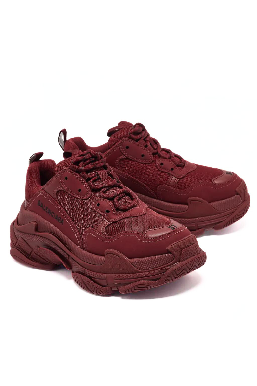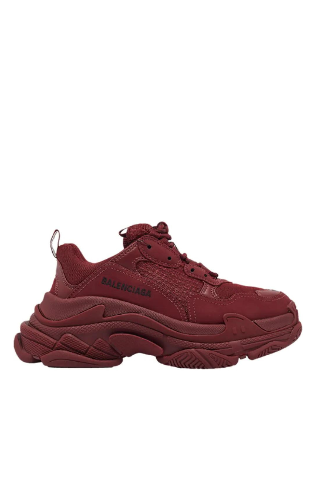 Balenciaga Burgundy Mesh and Nubuck Leather Triple S Lace Up Sneakers