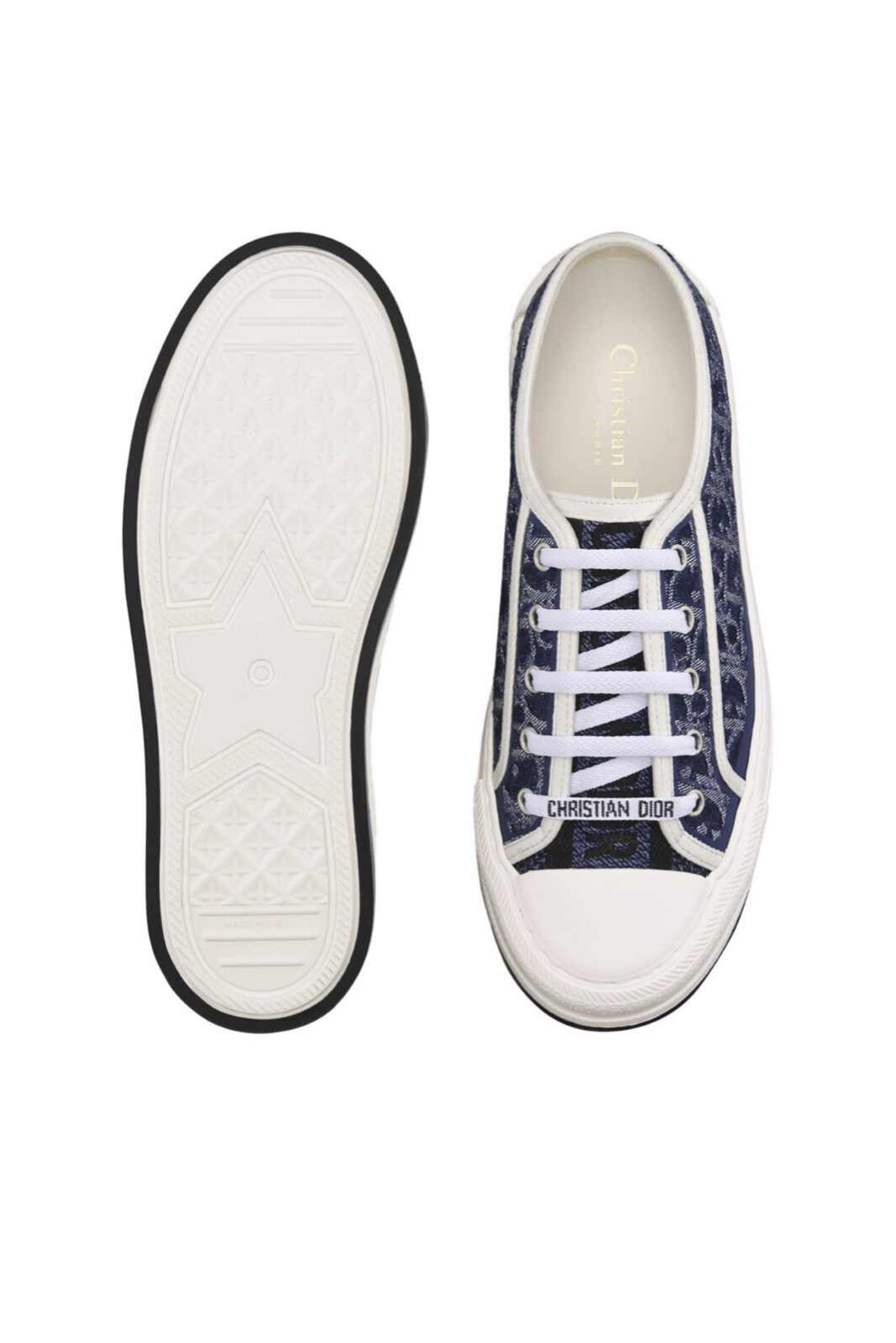 Design: Elementul central al acestor sneakers este aspectul lor modern, cu o parte superioară din denim brodat care combină stilul emblematic Dior cu un efect contemporan de spălare. Semnăturile Christian Dior sunt vizibile pe limbă, pe talpă și pe șireturi, adăugând un accent subtil, dar iconic. Talpa platformă groasă cu detalii distincte și steaua, simbolul norocos al lui Christian Dior, completează designul. Un set suplimentar de șireturi este inclus pentru personalizare.