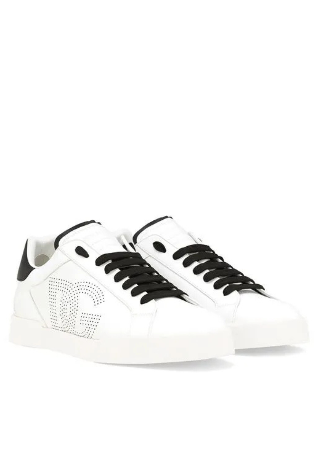 Sneakers-ii Portofino Logo de la Dolce & Gabbana reinterpretează modelul low-top clasic cu un design modern și sofisticat. Cu accente alb-negru și logo-ul DG lateral, acești pantofi sport sunt ideali pentru ținutele casual sau chiar pentru un look party stylish.