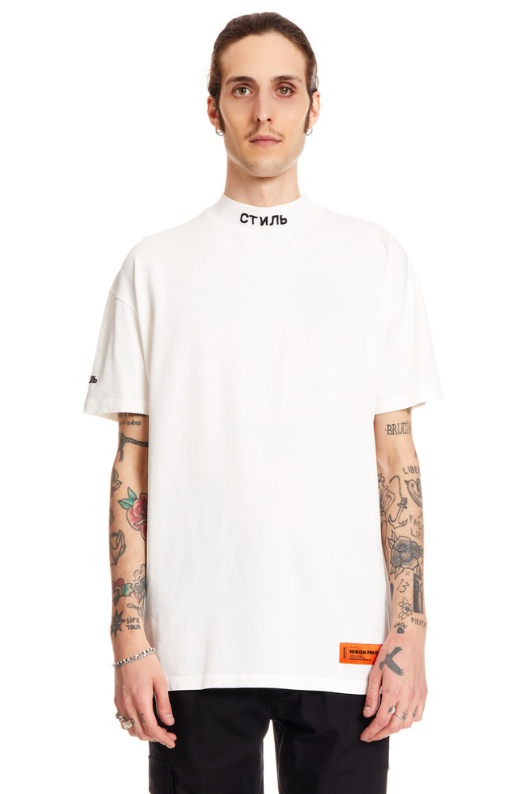 Heron Preston redefinește stilul streetwear prin piese moderne și detalii emblematice, iar CTNMB T-Shirt este o alegere perfectă pentru un look urban sofisticat. Confecționat din bumbac 100%, acest tricou oferă confort și durabilitate, având un design distinctiv cu guler înalt și logo brodat contrastant. Logo-ul clasic și eticheta portocalie completează aspectul autentic al brandului.
