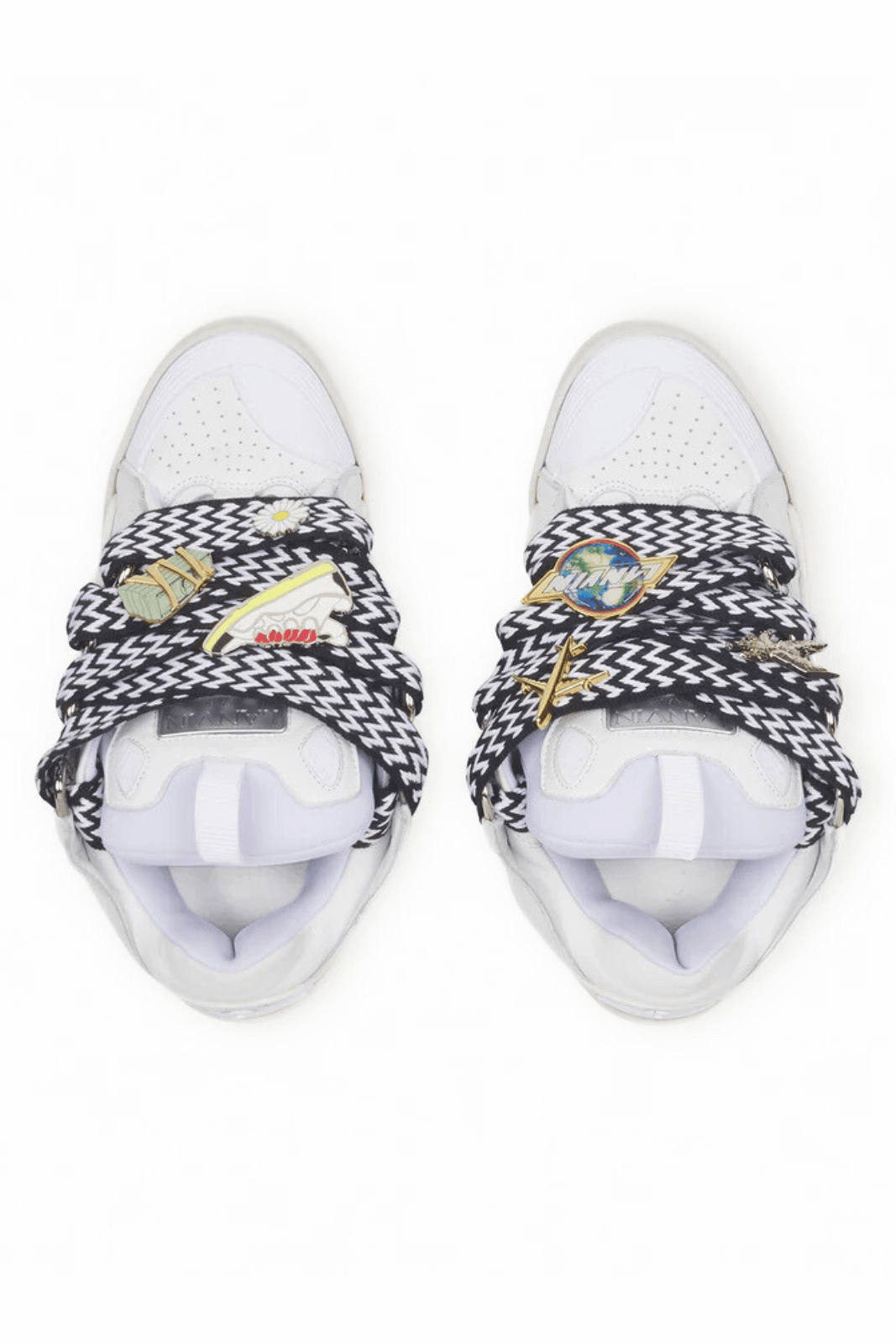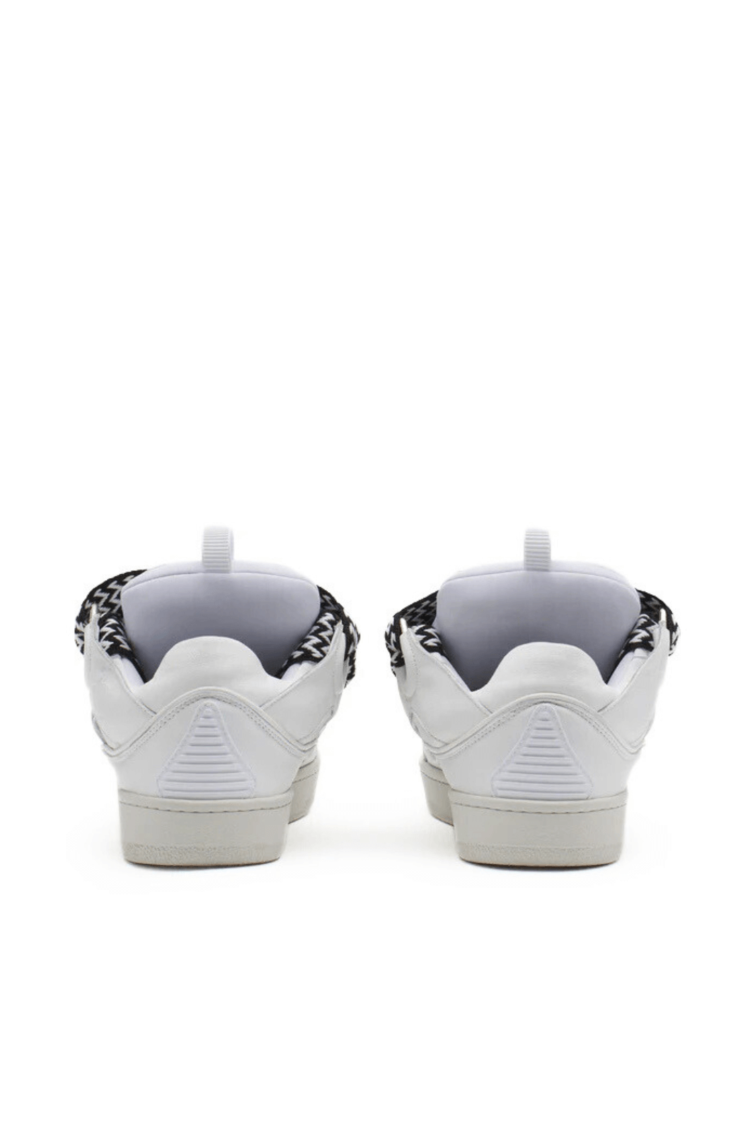 Fabricat cu măiestrie în Italia, Lanvin x FUTURE Curb 3.0 Leather White Sneakers for Men reprezintă o piesă statement care combină tradiția brandului cu influențele culturii moderne, fiind potriviți pentru ținute casual și edgy.