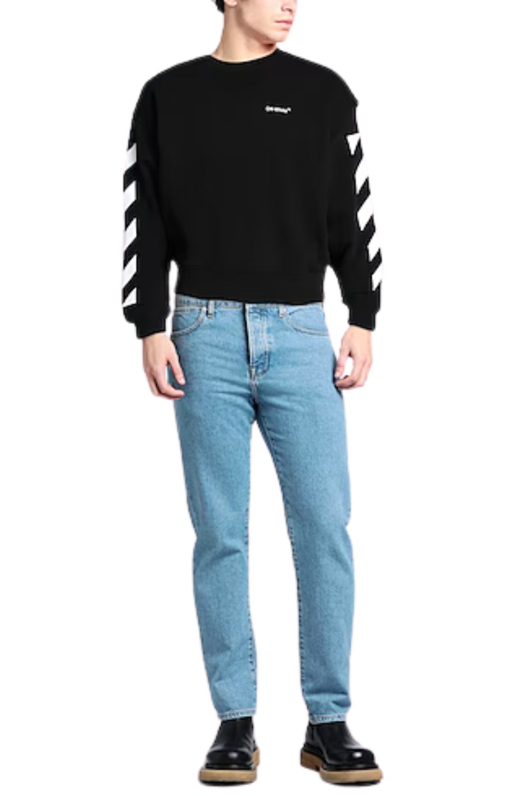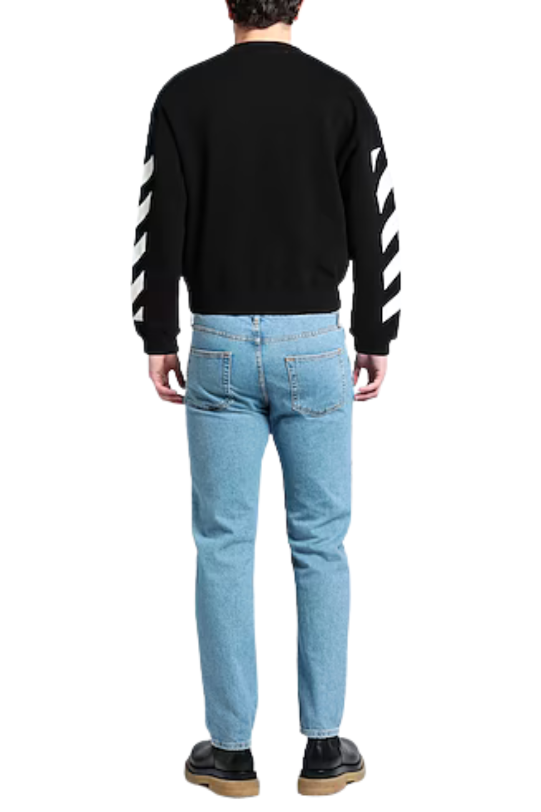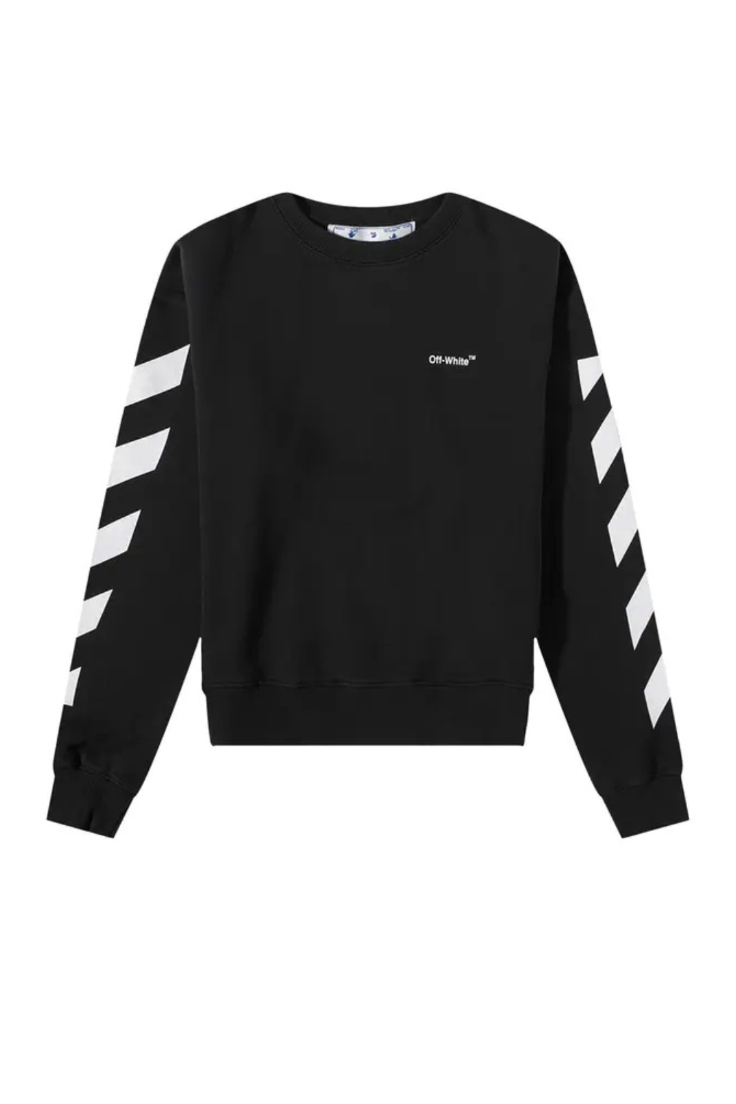 OFF-WHITE DIAGONAL HELVETICA OVERSIZED SWEATSHIRT 'BLACK' este alegerea ideală pentru cei care își doresc un mix de confort și stil avangardist, fiind o piesă statement în orice garderobă streetwear.