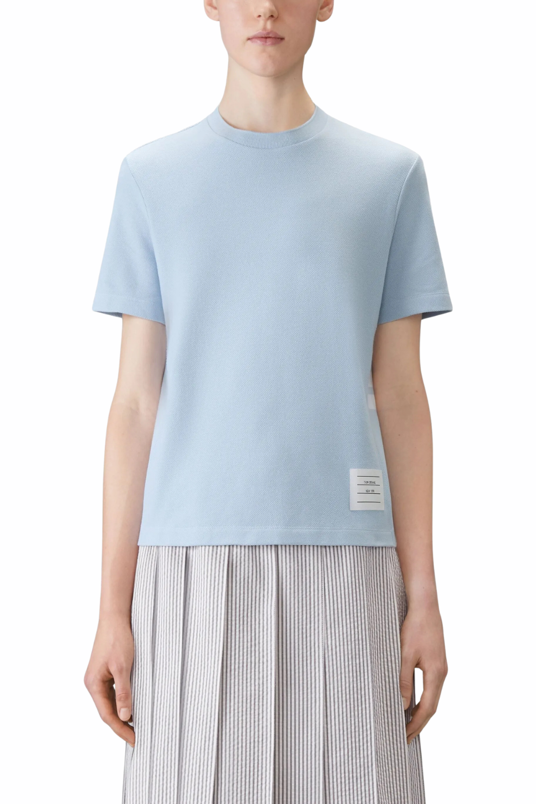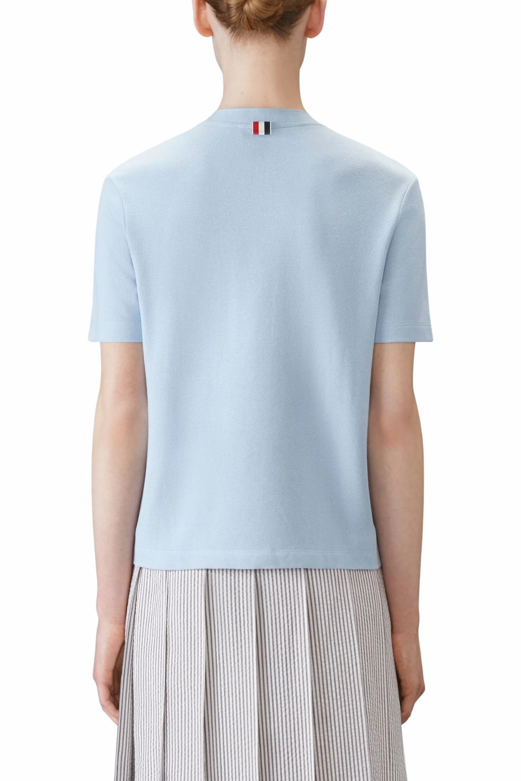 Thom Browne 4-Bar Stripe T-Shirt Blue este o piesă clasică, subtil sofisticată, ce combină simplitatea premium cu elementele iconice ale brandului pentru un look contemporan și rafinat.